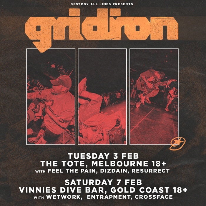 Pennsylvania's Gridiron will perform their first ever Queensland headline show at Vinnies Dive Bar, Gold Coast on Saturday 7 February with special guests Wetwork, Entrapment + Crossface. This is a show you won't want to miss out on, that will bring an explosive blend of hardcore with no barricades.