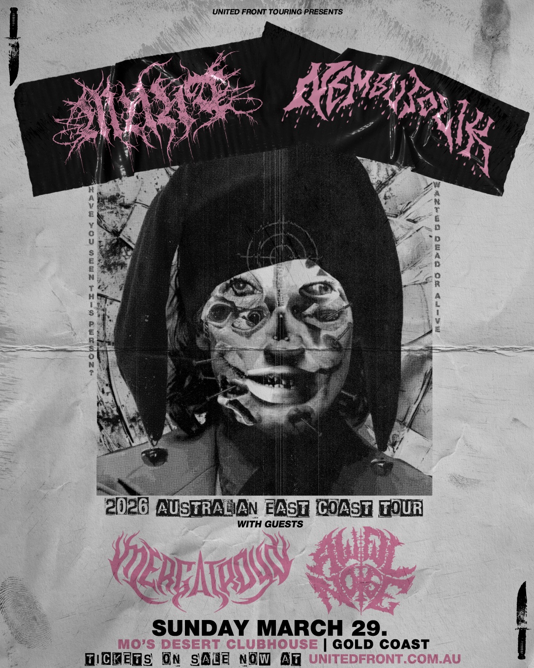 Australia is about to be hit with a double-dose of pure sonic punishment as two of the country’s most dangerous underground acts Munt and Nembutolik unite for a ruthless nine-date co headline tour set to shake the foundations of every city.
