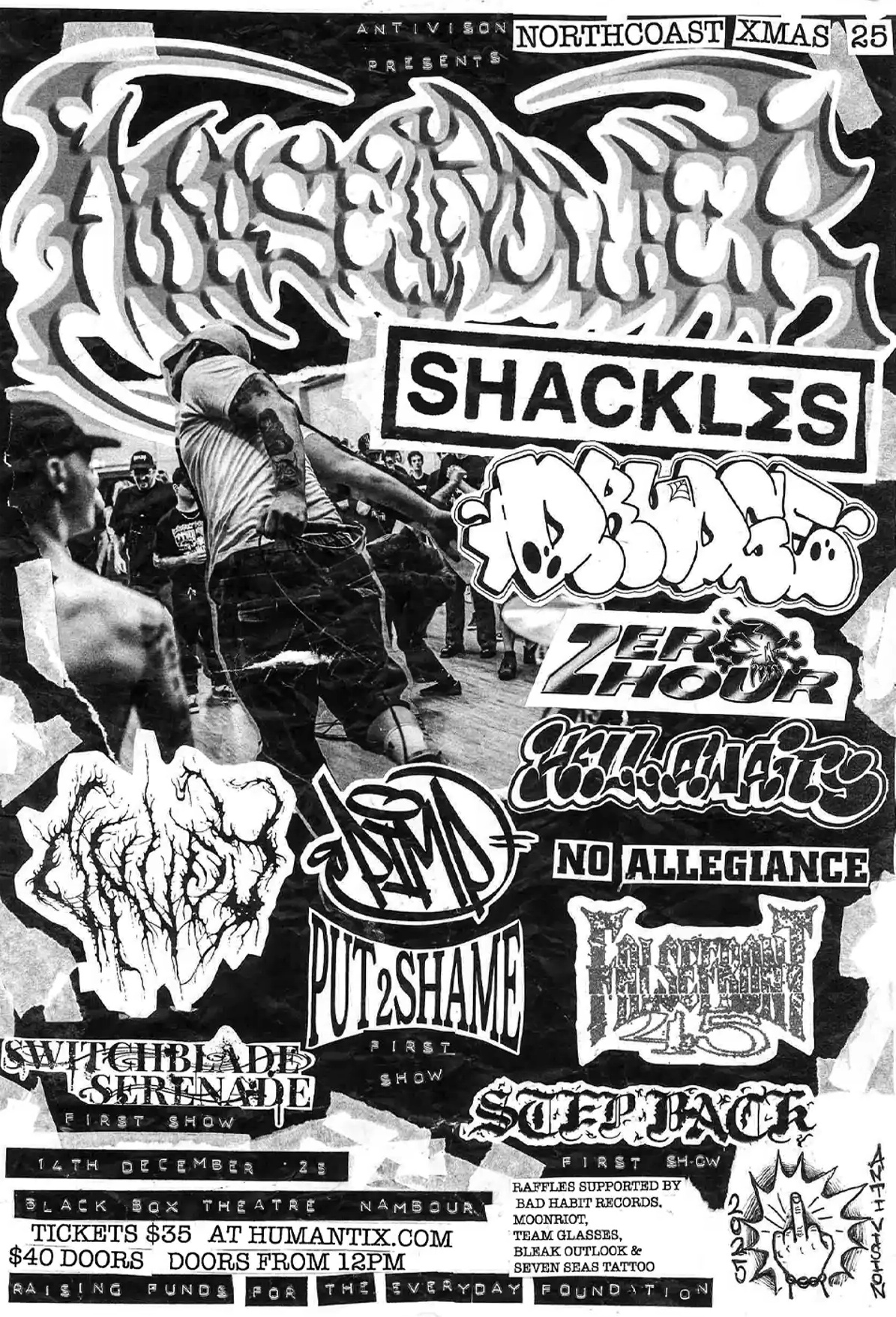 An All Age Hardcore mini fest raising funds for The Everyday Foundation, going towards presents for disandvantaged families around the Sunshine Coast. This year we bring 12 bands from around the country including